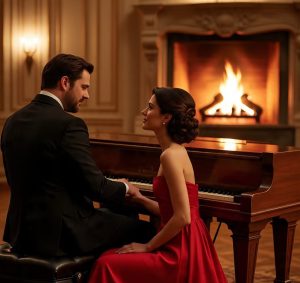 جلس يعزف مقطوعته الموسيقة وهي تجلس أمامه بأناقتها وعطرها وكأن وجهها منبع النور الوحيد في الصالة الواسعة بضوئها الخافت بدء قلبه يخفق وصوت النغمات تتراقص