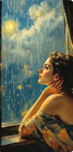 ووصف لي جغرافيا أماكن تملؤها زهور المحبة، وتنبع منها جداول الإخلاص والأمان، اندهشت للصورة، فركضت مسرعة نحو النافذة.. أتأمل الأمطار والسحاب.. وكنت كل ما أراه بين الغيوم صورة واحدة فقط! من الغرابة أنني كنت أراها في عدة أماكن.. بل في كل الأماكن.